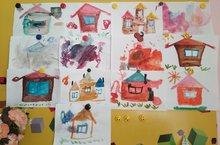 К детям средней группы в гости пришел герой из сказки "Теремок" медведь. От имени всех героев сказки он обратился к детям с просьбой, чтобы всем им нарисовали новые теремки. Дети с большим удовольствием выполнили просьбу медведя. Данное занятие развивает воображение, самостоятельность, фантазию. Все герои сказки "Теремок" остались очень довольными своими теремочками.