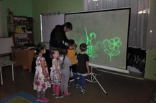 В детском саду прошло шоу "Световые анимации". Детям показали сказочные картины, нарисованные светом. В конце шоу каждый ребенок сам своей рукой рисовал светом и получил огромное удовольствие.