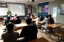 С целью формирования активной гражданской позиции, положительного отношения к российским вооружённым силам, к службе в армии, воспитания уважения подрастающего поколения к профессии военного, к воинской чести и долгу на примерах воинского мужества и героизма, опыта службы офицеров запаса российских вооруженных сил 17 декабря в 9 классе прошел урок мужества «Есть такая профессия – Родину защищать». Особое внимание в ходе урока было уделено Вооруженным силам РФ. «У нашей республики тоже богатая и славная военная история. Нам есть, что вспомнить, нам есть чем гордиться. Во все времена самым высоким званием из всех было - защитник Родины. Память народа свято хранит имена отважных воинов», - отметил педагог-организатор ОБЖ Р.Т.Файзрахманов . Раис Талгатович также рассказал ребятам о подготовке офицерских кадров в военных учебных заведениях России.