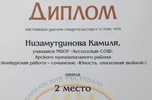 В Казани в Национальном культурном центре «Казань» при поддержке фонда «Русский мир» состоялся Республиканский фестиваль образовательных технологий по продвижению русской культуры в полиэтнической и поликонфессиональной среде «Золотая осень». Организаторами фестиваля являются Министерство образования и науки Республики Татарстан и Институт развития образования Республики Татарстан.Участники фестиваля – педагоги русского языка и литературы, истории, географии, рисования, руководители школьных музеев, а также учащиеся общеобразовательных организаций из 16 муниципальных районов Республики Татарстан, в том числе и обучающаяся нашей школы 10 класса Низамутдинова Камиля (учитель Н.З.Гумерова). Всего в конкурсе участвовали свыше тысячи конкурсных работ. В рамках фестиваля прошли творческие мастер- классы.По итогам конкурса в номинации «Почему я люблю День Победы? Наш Бессмертный полк» Камиля удостоилась Диплома II степени. Поздравляем!