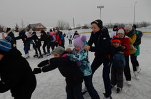 На школьном катке прошел спортивно-развлекательный праздник «Все на лёд!». На него ученики пришли с хорошим настроением, потому что, во-первых, тогда закончилась 2 четверть, и, во-вторых, в это утро нельзя было грустить: на улице погода была тёплая, приглашала всех веселиться и играть. Отряд RIнг-S здоровьесберегающего проекта SаMоSтоятельные дети организовали различные конкурсы, игры, состязания на льду: «Поезда», «Найди себе пару», «Ручеёк» и т.д. Конкурсы оказались веселыми, развлекательными. Но сноровка, сплоченность команды, слаженность движений и здесь были необходимы. В общем, в этот день на школьном катке слышались всевозможные крики: кто-то поддерживал выступающих, кто-то кричал от радости, кто-то бурно обсуждал результаты. К сожалению, все хорошее быстро заканчивается. Так и этот день пролетел незаметно. После всех конкурсов в школьной столовой накрыли столы и наши любимые повара порадовали ребят своими чудесными блинами. От такого угощения никто не отказался. Ребята с удовольствием угощались блинами с вареньем, пили горячий чай. Праздник удался на славу. Это был действительно спортивный праздник, так как ребята получили массу положительных эмоций, от души веселились, с радостью принимали участие во всех конкурсах.