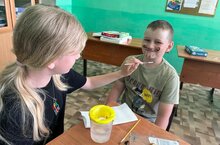 9 июня в пришкольном лагере «Друзья природы» прошел день шуток и смеха. Это самый забавный, задорный и веселый праздник: ведь можно пошалить и попроказничать. С утра для ребят была организована зарядка, которая сопровождалась смешными упражнениями; также они весь день подшучивали друг над другом. Затем в форме практического занятия была проведена минутка здоровья «Если хочешь быть здоров - улыбайся». В первой половине дня прошла развлекательная программа «У нас нет плохого настроения». Ребята активно участвовали в забавных конкурсах, в веселых играх. После обеда дети рисовали аквагрим, делали смешные маски и создавали для себя шутливые образы. В пришкольном лагере дети не только развлекаются, но и укрепляют своё здоровье. Шутками, смехом и отличным настроением зарядились воспитанники лагеря на весь день. Кроме этого, ребята провели достаточно времени на свежем воздухе. Перед уходом домой с ребятами была проведена беседа по правилам дорожного движения «Знай правила дорожного движения».