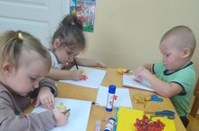 Учить детей наклеивать круглые предметы. Закреплять представления о различии предметов по величине. Закреплять правильные приемы наклеивания (брать на кисть немного клея и наносить его на всю поверхность формы