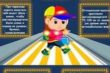 Памятка для родителей «Значение световозвращающих элементов» В зимнее время года, когда утренние и вечерние часы сумеречны, путь юных пешеходов от дома до школы и обратно может проходить вне светового дня. Однако ребѐнок всегда должен быть заметен на дороге. Поэтому родителям следует позаботиться о дополнительных мерах безопасности своего ребенка. Не последнюю роль в этом играет одежда, а точнее ее цвет и световозвращающие элементы. Для пешехода очень важно быть заметным. По данным статистики большинство наездов транспорта на пешеходов происходят именно из-за плохой видимости пеших людей. Важно помнить, что при движении с ближним светом фар водитель замечает пешехода со световозвращающим элементом с расстояния 130 - 140 метров, тогда как без него – лишь с 25 – 40 метров. Безопасность детей на дорогах во многом зависит от того, насколько ответственно ведут себя водители автомобилей, следуют ли всем указаниям и все ли правила соблюдают. Особенно внимательно следить за дорогой водитель обязан, передвигаясь в условиях недостаточной видимости: в темное время суток, во время дождя или тумана. Немаловажную роль играет участие родителей в обеспечении безопасности дорожного движения для детей. Одним из самых эффективных способов снизить риск дорожно-транспортных происшествий является использование световозвращающих элементов на одежде или сумке ребенка. Такой элемент (фликер) изготавливается из специального материала, который обладает способностью отражать свет фар на расстоянии от 130 до 200 метров. Световозвращатели могут иметь любую форму и окрашиваться в любые цвета, поэтому их легко можно превратить из сигнального приспособления в модную деталь одежды ребенка. Световозвращатели всех типов (подвески, значки, ремни и нашивки, наклейки, светоотражающие браслеты и брелоки) легко закрепляются на рукавах или лацканах одежды или на портфеле Световозвращатели в форме наклеек удобно использовать благодаря клейкой основе, которая надежно удерживает сигнальный элемент на любой поверхности. Но полагаться только лишь на фликеры тоже не стоит. Это всего один из способов пассивной защиты пешеходов. Необходимо помнить о воспитании грамотного пешехода с детства. Чтобы ребенок не нарушал Правила дорожного движения, он должен не просто их знать - у него должен сформироваться навык безопасного поведения на дороге. Световозвращатели для пешеходов - безопасность на дороге для детей и взрослых. Уважаемые родители! Научите ребенка привычке соблюдать Правила дорожного движения. Побеспокойтесь о том, чтобы Ваш ребенок «засветился» на дороге. Примите меры к тому, чтобы на одежде у ребенка были светоотражающие элементы, делающие его очень заметным на дороге. Помните - в темной одежде маленького пешехода просто не видно водителю, а значит, есть опасность наезда.