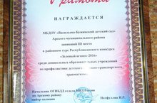 Наш МБДОУ "Васильева Бужинский детский сад" занял 3 место в районном туре Республиканского конкурса "зеленый огонек-2016" среди дошкольных образовательных учреждений по профилактике детского дорожно-транспортного травматизма. Поздравляем и желаем новых успехов!