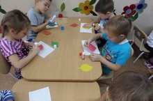Цель: учить работать с клеем и ножницами, развивать мелкую моторику рук, учить правильно и красиво располагать листочки на альбомном листе