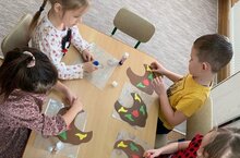 Сегодня мы с детьми творили красоту. Дети с большим интересом украшали элемент женской татарской национальной одежды - изю.