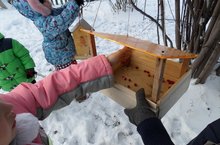 Зимой птицам тяжело найти корм, поэтому мы периодически подкармливаем их на нашем участке. Дети учатся доброжелательно и с сочувствием относиться к птицам и всему живому.