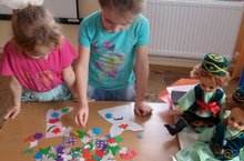 Балалар татар теле шөгелендә бик кызыксынып татар кызлары кигән читек белән алъяпкыч бизәделәр. Аларның бизәкләре искиткеч матур булып чыкты!