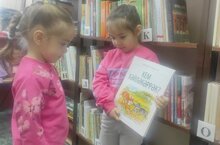 Китапханәче Фәридә Альбертовна балаларны яңа китаплар белән таныштырып тора.