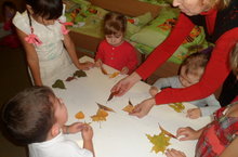 Кипкән яфракларны барлап,фантазияне эшкә җигеп, кул эше эчәнлегенә хәзерләнәбез. балалар яфракларны кайда, кайчан җыйганнарын искә төшерәләр, киптерү алымнары белән уртаклашып , бик тләп эшкә керешәлр.