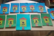 Дети ожидая прилета скводцов, приготовили им скворечники.