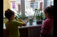 Тәрәз төбе бакчасында үсә гөлләр, чәчәкләр. 25.03.2014