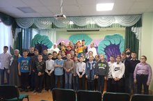 В связи с декадой инвалидов артисты театра кукол "Сказочная страна" побывали в Новокинерской школе-интернате , где представили ученикам спектакль "Поляна деда Абая".