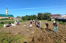 Бүген мәктәп бакчасында көзге өмә булды. укучылар һәм укытучылар бергә бәрәңге, кишер, чөгендер уңышын алдылар