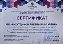 Мифтахутдинов Ригель учащийся музыкального отделения(класс баян), преподаватель Марданов Даниль Исламович успешно освоил сентябрьскую профильную программу по музыкально исполнительскому искусству ( направление баян и аккордеон) в Республиканском центре выявления и поддержки одаренных детей и молодежи г.Казань.