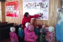 Авыл мәдәният сараена экскурсия ясадык.Сугыш һәм тыл ветераннары белән фотолар аркылы таныштык. Биредә нәниләр үзләренең әби- бабаларын да күрә алдылар, Җиңүнең зур бүләк икәнен аңладылар.