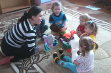 Кечкенәләр төркемендә сөйләм телен үстерү шөгыле. Тәрбияче, балалар белән, әкият геройлары аша, исәнләшү, саубуллашу һәм кереш сүзләрен кабатлый.