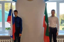 Иртәнге линейка РФ һәм РТ флагларын алып кереп, гимн җырлаудан башланды. Аларны алып керү 8 нче сыйныфның уку алдынгылары булган укучыларга тапшырылды.
