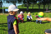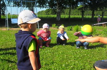 Максат: Кечкенәләр төркемендә туплар белән танышуны дәвам итеп, иртәбезне иртэнге гимнастика белән дәвам иттек. Көнебезне күңелле туп көне исеме астында үткәрдек. Туплар белән төрле уеннар уйнадык.