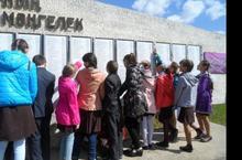 Укучыларыбыз сугышта үлеп калган бабайларын һәйкәлгә уелып язылган исемнәр арасыннан барладылар. 08.05.2014