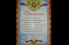 “ Иң яхшы мәктәп яны лагере - 2012“ район күләм конкурсында мәктәбебезнең “Бәхетле балачак” лагере икенче урынны яулап, Мәгариф бүлеге грамотасына һәм кыйммәтле бүләккә лаек булды. Лагерь җитәкчесе Садриева Алия Габдулла кызы.