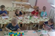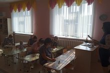 Кечкенәләр төркемендә "Җәйнең бер көне" исемле темага рәсем ясау күренеше.
