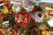 Бүген бакчабызда зурлар төркемендә көз бәйрәме үткәрдек. Бәйрәмебезгә кунакка әти - әниләр дә килде. Көз бәйрәме әкият геройлары, яшелчәләр, күңелле җырлар, биюләр белән үрелеп барды. "Көзге шляпа" конкурсына йомгак ясалды. Балаларга дипломнар бирелде.