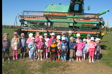 Балалар белән комбайннар паркына сәяхәткә бардык. Анда комбайннар һәм комбайнны йөртүче абыйлар белән таныштык.Соңыннан комбайннарны басуга озатып калдык,аларга хәерле юллар теләдек. Бу сәяхәттән барысы да канәгать калдылар.