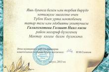 Галиәхмәтова Гөлшат Наил кызы Мактау кәгазе белән бүләкләнде 27.08.2013