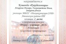 Түбән Көек урта гомуми белем бирү мәктәбенең 3 нче сыйныф укучылары Казан милли тикшеренү технология университеты уздырган «Вперед – в прошлое - 2012» иҗади конкурсында катнаштылар.