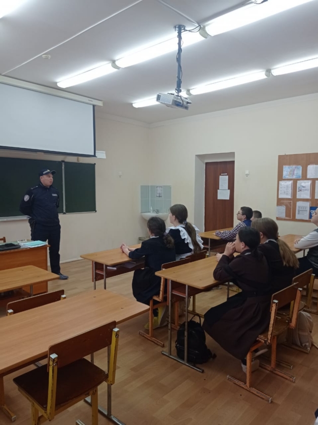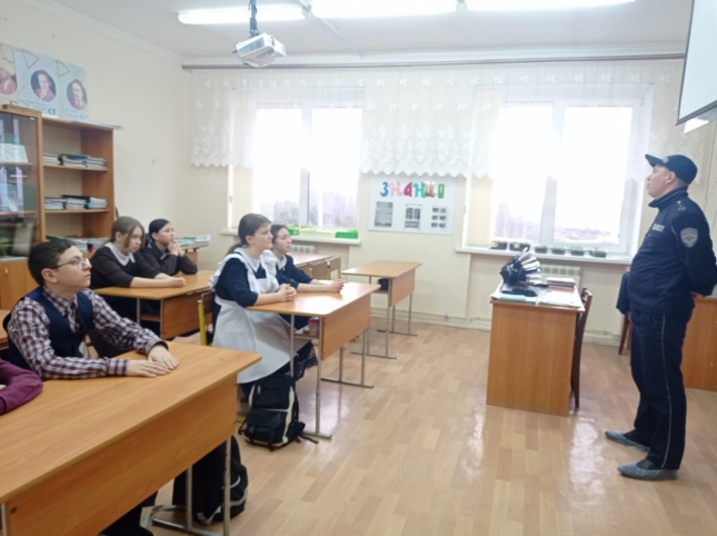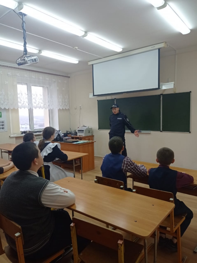 Госинспектор БДД ОГИБДД Мугтазиров Ренат Радикович напомнил учащимся о правилах дорожного движения и предоставил памятки.
