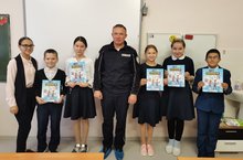На встречу с учащимися 5 класса пришел начальник ГИБДД Атнинского района капитан полиции Ямалиев Айнур Ильгамович.