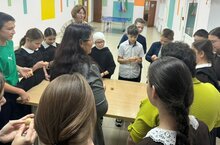 Мәктәбебезнең юнармиячеләре Яңа Шашы авыл җирлегеннән Эфган сугышында катнашучыларның әниләре белән очрашуда һәм аларнын туган нигезләренә элмә такта элү чарасында катнашты.