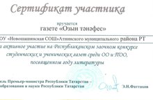 Яңа Шашы мәктәбенең балалар һәм яшүсмерләр"Ялкын" оешмасы укучылары тарафыннан чыккан "Озын тәнәфес" мәктәп газетасы конкурста катнашып сертификат белән бүләкләнде.