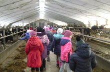 Бүген без лагерьга йөрүче укучылар белән "Таң" күмәк хуҗалыгының фермасына бардык. Анда карусельнең ничек эшләвен күзәттек.