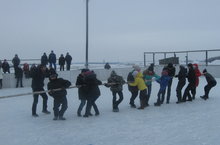 Хәрби спорт уеннары дәвам итә. Бүген командалар боз өстендә футбол уйнадылар.