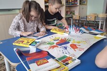 " 4 ноябрь - Бердәмлек көне" уңаеннан балалар белән пластинография техникасы кулланып флаг эшләдек.