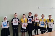 Бәрәскә урта мәктәбе базасында эшләп килүче "ЮИД" берләшмәсе укучылары занятиеда юл йөрү билгеләрен ясыйлар.