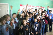 Георгий лентасы көне. Укучылар георгий лентасы акциясе уңаеннан ленталар тагып килде. 23.04.2016