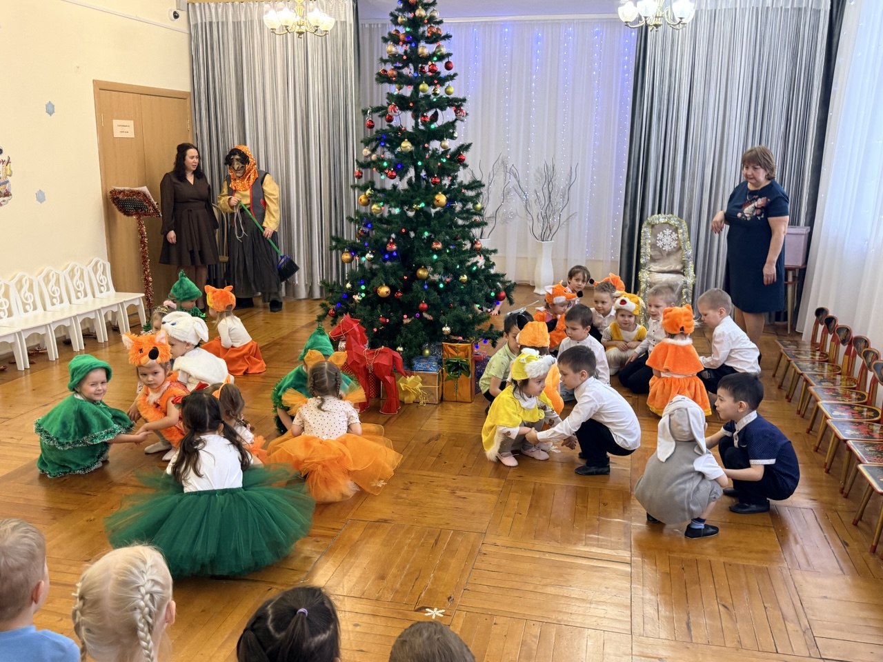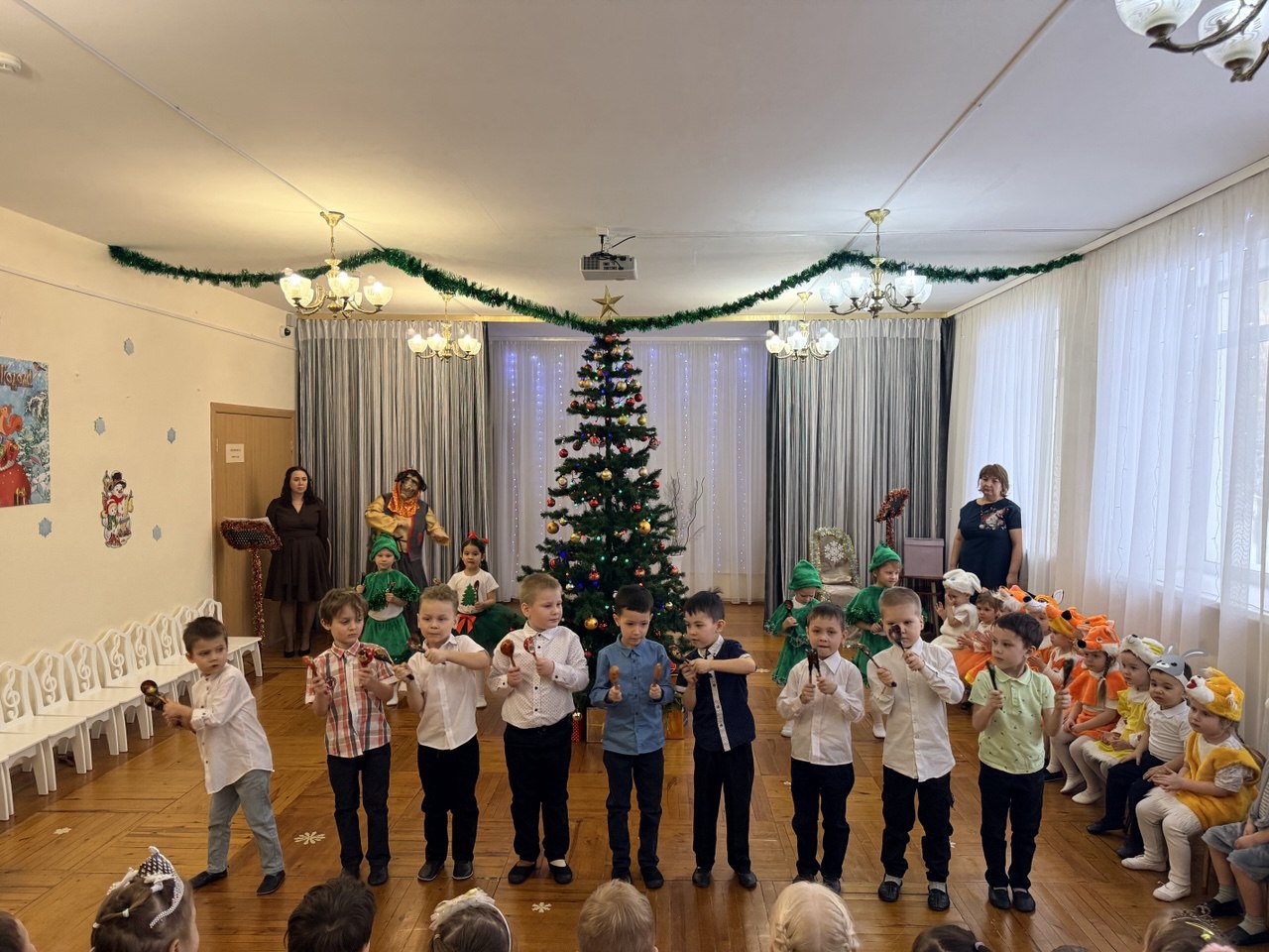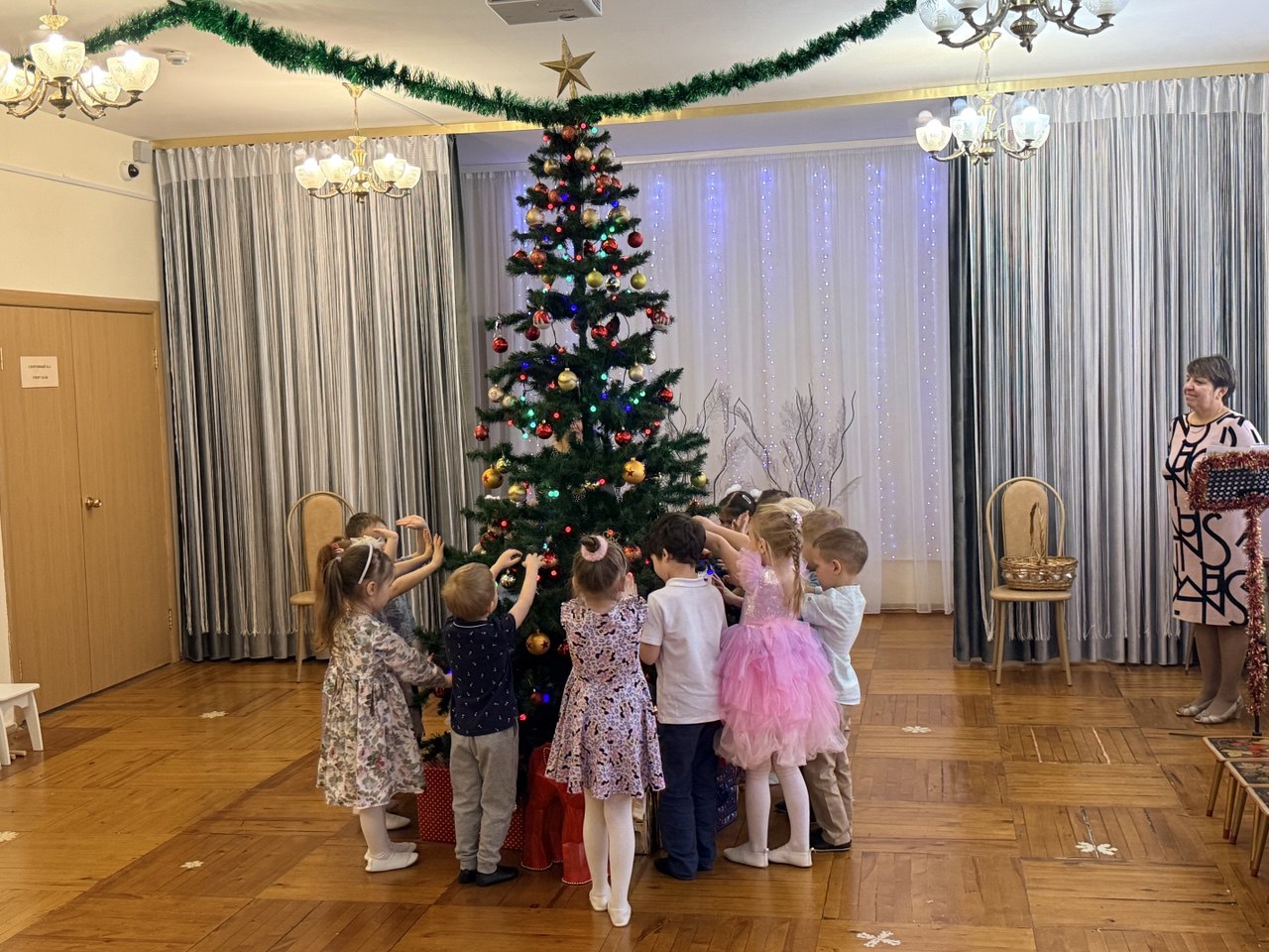 Завершились новогодние каникулы. Пришло время снимать игрушки с ёлки, прятать их в коробки до следующего Нового года… Но как можно расстаться с новогодней красавицей, не поблагодарив ее за чудесные праздники, не попрощавшись до будущей зимы? Дети, пришедшие в детский сад после выходных дней, вновь встретились с нарядной красавицей ёлочкой.
