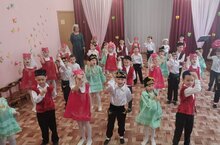 Это к нам пришла……Сегодня во всех группах прошло весеннее развлечение. Дети с удовольствием поиграли, потанцевали, пропели песни на двух языках, встретили красавицу Весну.