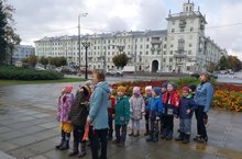 Дети подготовительной группы ходили на экскурсию в парк "Крылья Советов". Это один из старейших парков Казани. Центральной аллеей, идущей от главного входа в парк является «Аллея Славы», которая представляет собой монументальный комплекс, включающий в себя памятник В. И. Ленину и восемь бюстов крупнейших русских учёных и лётчиков, расположенных попарно с правой и левой сторон аллеи на одинаковых четырёхгранных постаментах. В момент нахождения в парке работал фонтан, который под музыку "танцевал".