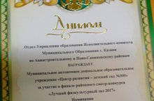 Наш детский сад был награжден дипломом за участие в финале районного смотр-конкурса "Лучший физкультурный зал 2017" в номинации "Эстетичность и оригинальность спортивного оборудования".
