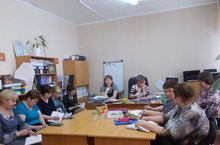 В детском саду прошел очередной педсовет, в котором были выслушены выступления по данной теме. Был подведен итог конкурса по презентации центров с использованием УМК. Вот они - наши победители: