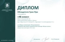 · Гран-при в номинации «Театральное искусство» завоевал 4Б класс (рук. Абдуллина А.Г., Титова И.Н., Каримова Э.А., Шайхутдинова Л.С.).