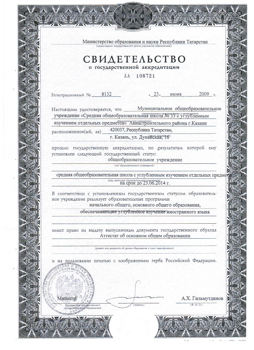 Свидетельство о государственной аккредитации
