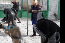 Весна по традиции в нашем саду начинается с двухмесячника по очистке территории от снега. Вооруживись лопатами и ломами все сотрудники нашего детского сада облагораживают территорию.