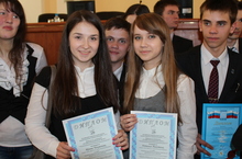 учащихся 11 А класса Чекменеву Ирину и Махотину Наталью - победителей номинации "Лучший инновационный проект" Российского национального конкурса водных проектов старшеклассников 2012,который состоялся 22-26 апреля 2012г. в г. Москва