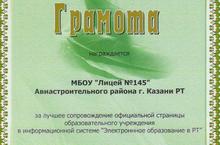 Сайт лицея отмечен Грамотой Министерства образования и науки РТ в номинации "За лучшее сопрововждение официальной страницы образовательного учреждения в информационной системе "Электронное образование РТ". Поздравляем!